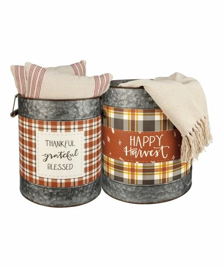 Spruce up your interior décor with this set of buckets boasting festive designs.