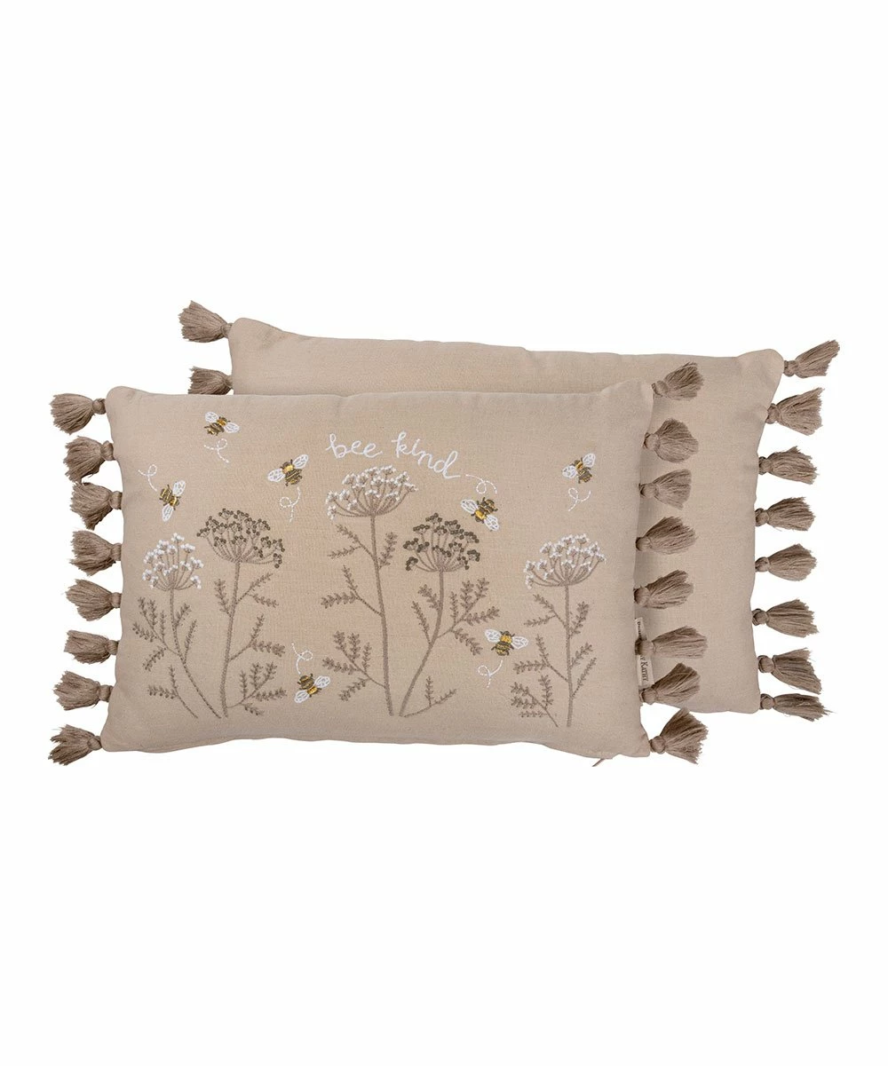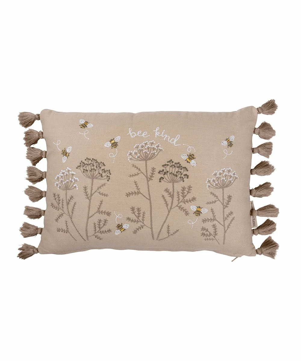 Playfully accent your home décor with this throw pillow, featuring a colorful bee and flower graphic as well as a sweet message.