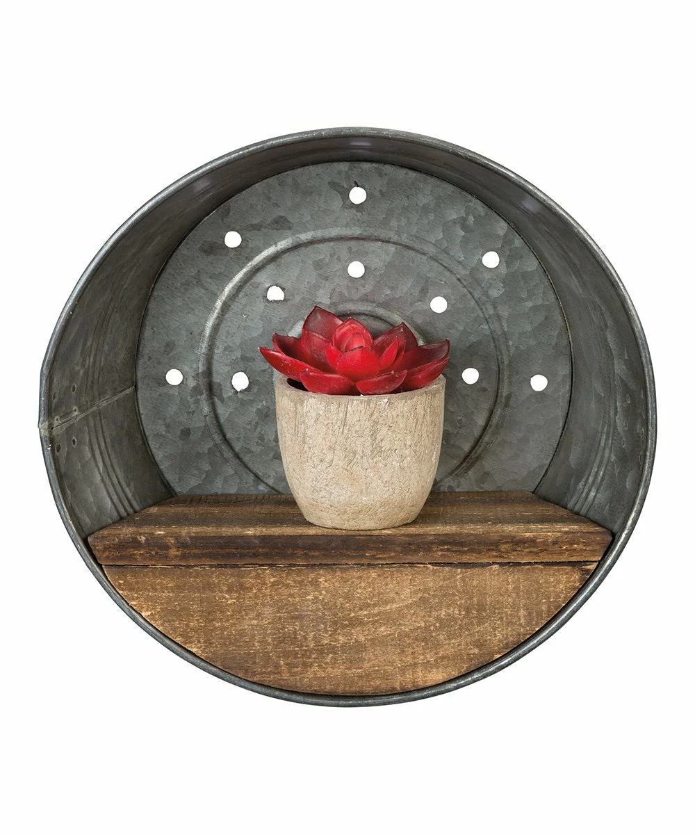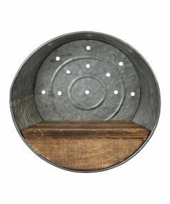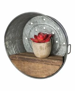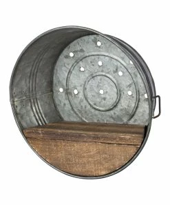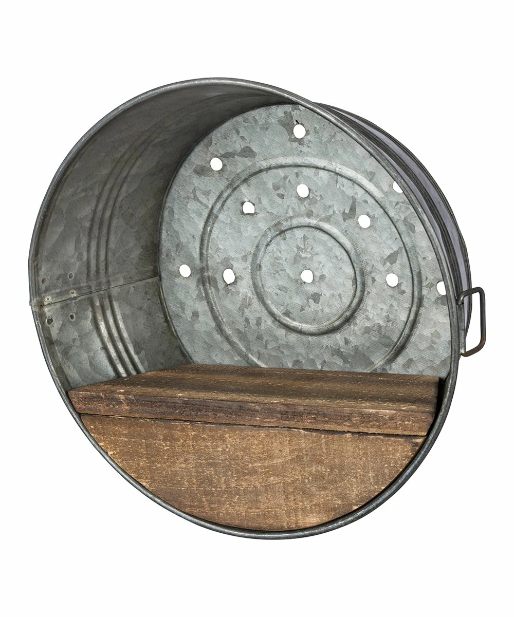 Display figurines, potted plants and cherished photos in laid-back style with this wall shelf featuring a galvanized metal bucket design for farmhouse-chic charm.