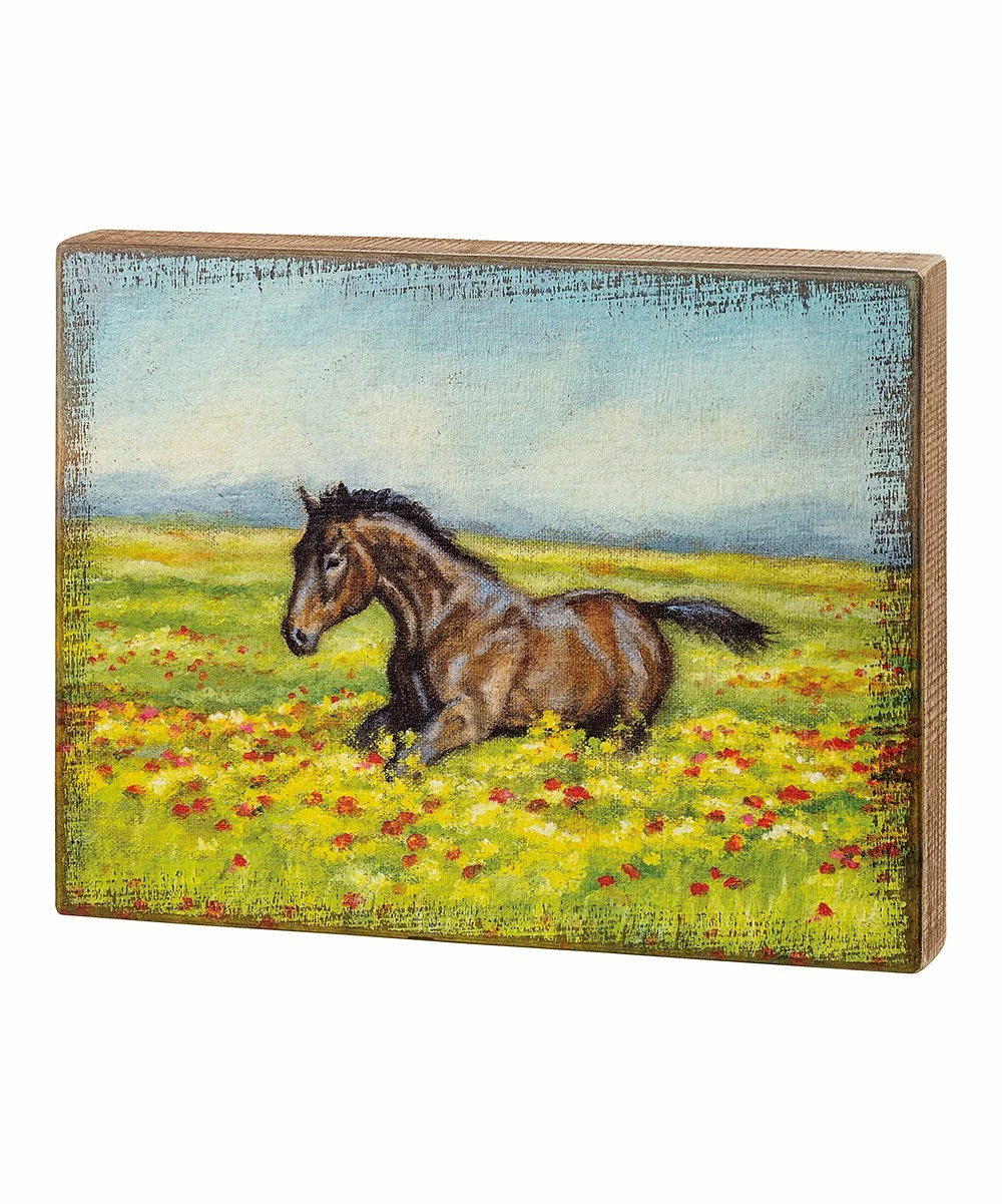 Bring country living a little bit closer to home with the majestic horse featured on this box sign finished in rich hues for a look that pops off the wood piece.