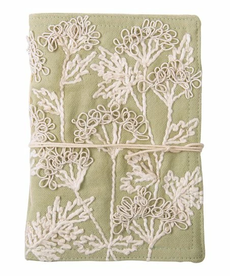 This journal’s fabric cover with lace flower designs adds boho-chic appeal to stationery collections.
