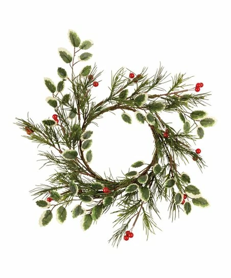 With realistic greenery and a rustic design, this candle ring completes your home’s seasonal look.