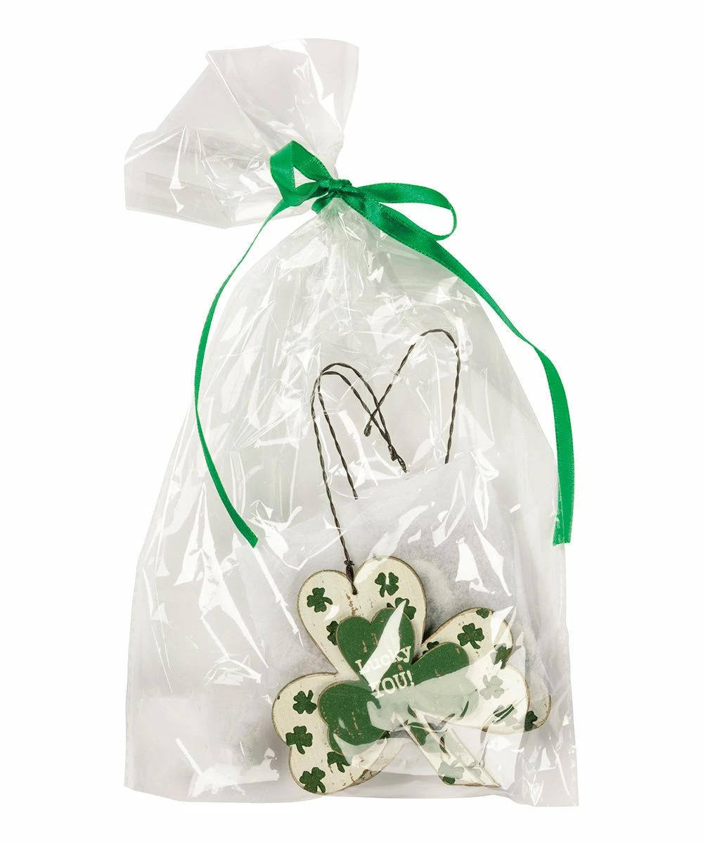 - Includes three green shamrock graphic text ornaments (three pieces total)