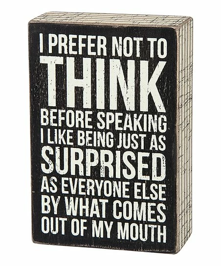 Add a bit of playful sarcasm to your office space with this box sign.