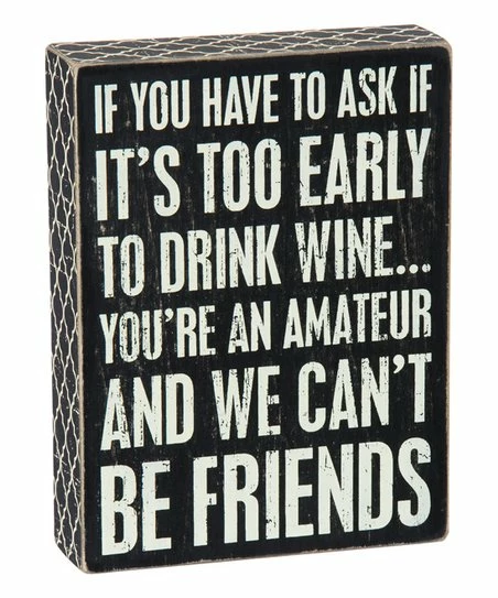 - Full graphic text: If you have to ask if it’s too early to drink wine, you’re an ameteur and we can’t be friends.