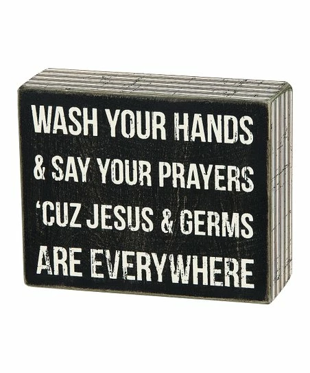 - Full graphic text: Wash your hands and say your prayers ‘cuz jesus and germs are everywhere