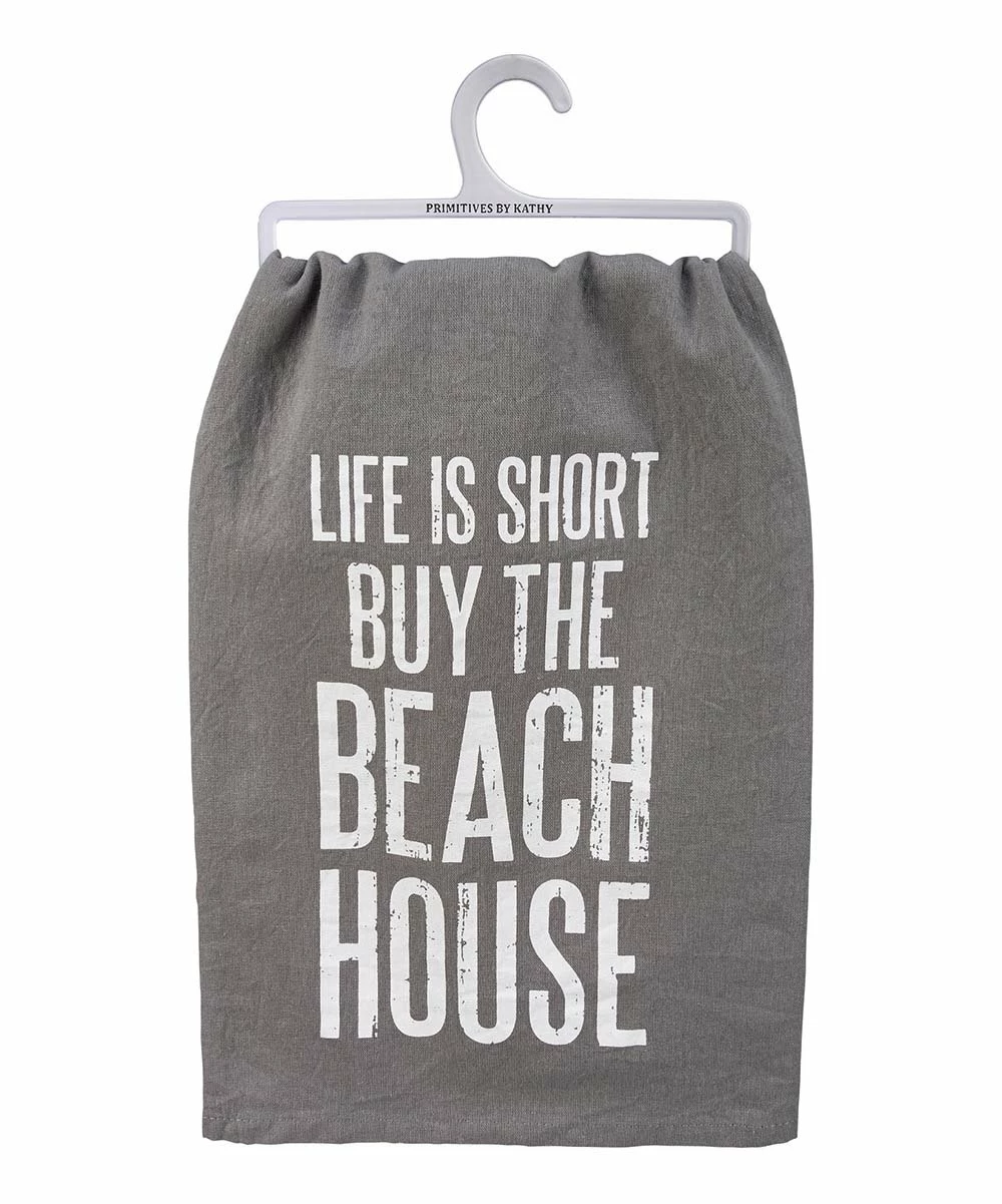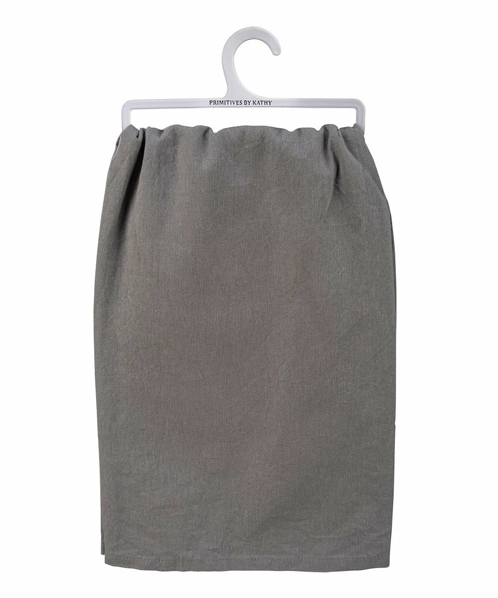 Refresh your kitchen ambience with this absorbent cotton towel flaunting a sweet sentiment.
