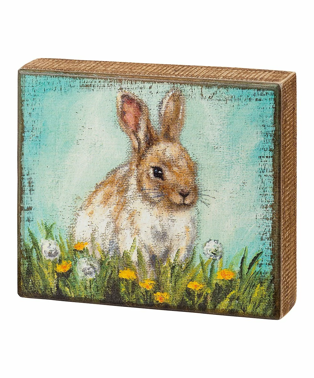 Bring country living a little bit closer to home with the bold bunny featured on this box sign finished in rich hues for a look that pops off the wood piece.
