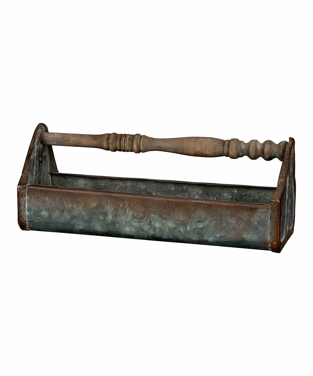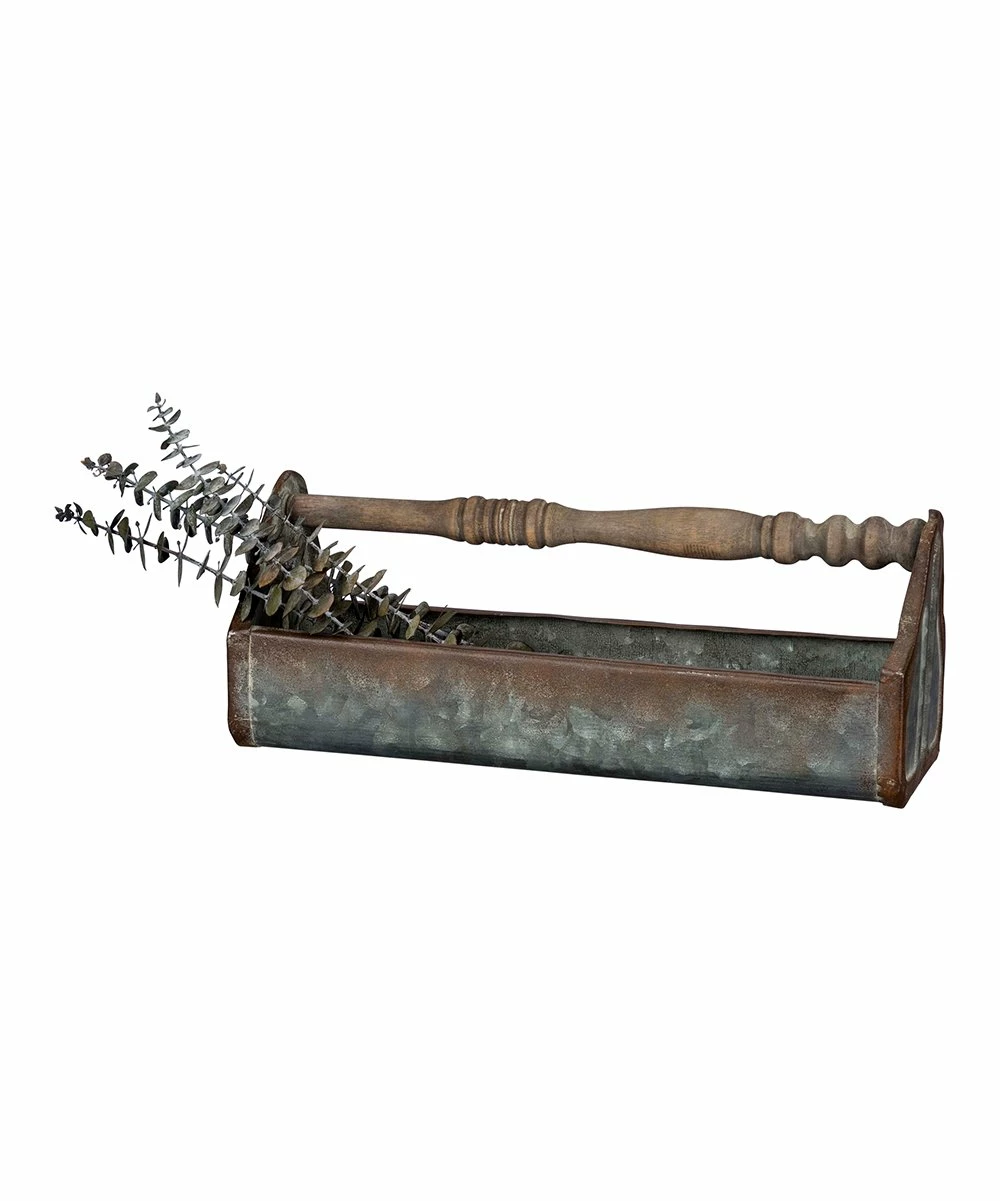 Bring order to your odds and ends or display flowers with the rustic charm of this metal and wood-handled tray.
