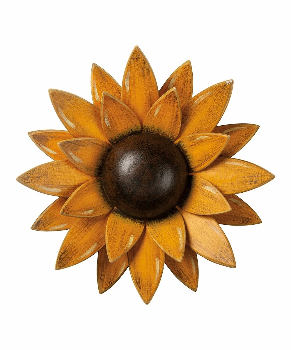 Enjoy the beauty of sunflowers all year ’round with this vibrant sunflower décor unfurling its wooden petals long your wall.