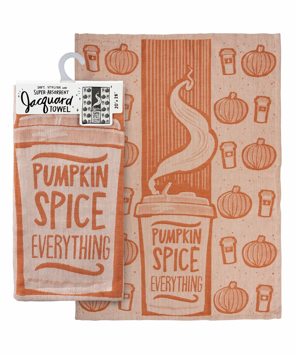 Embrace the season and your favorite flavors with this delightful dish towel proclaiming your love of pumpkin spice.