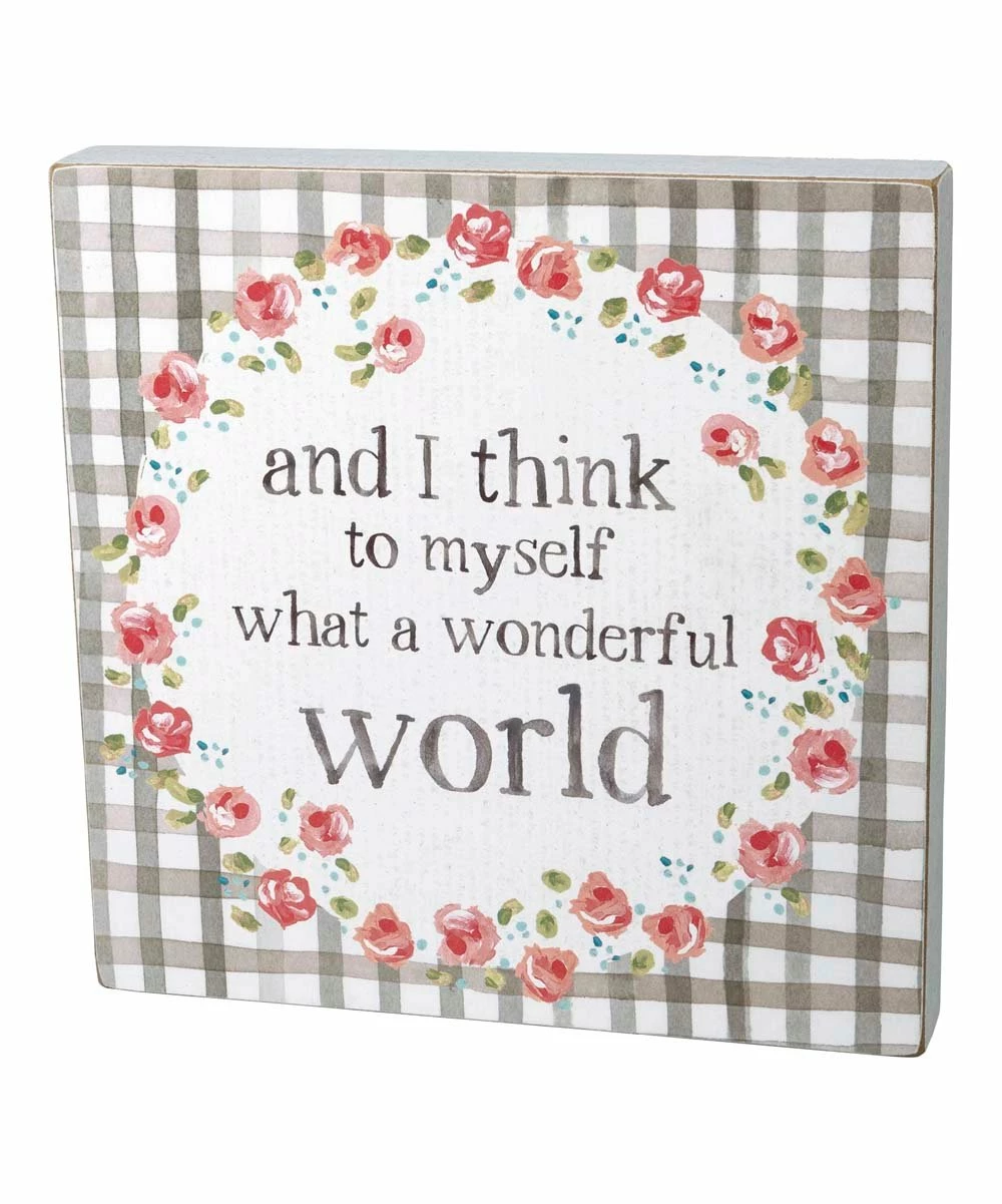 Improving your mood is as simple as glancing at the inspirational typography that appears among cheerful flowers on this rustic wood box sign. A keyhole slot gives you the freedom to mount it on the wall or rest it on a table or shelf.