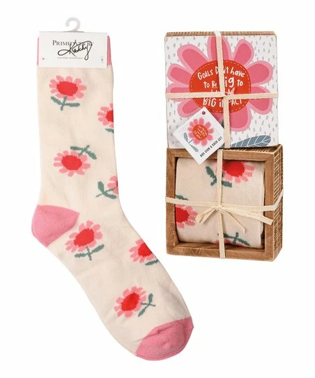 Gift yourself, family or friends with this set that includes a charming box sign to enhance décor and a pair of coordinated socks for a matching theme.