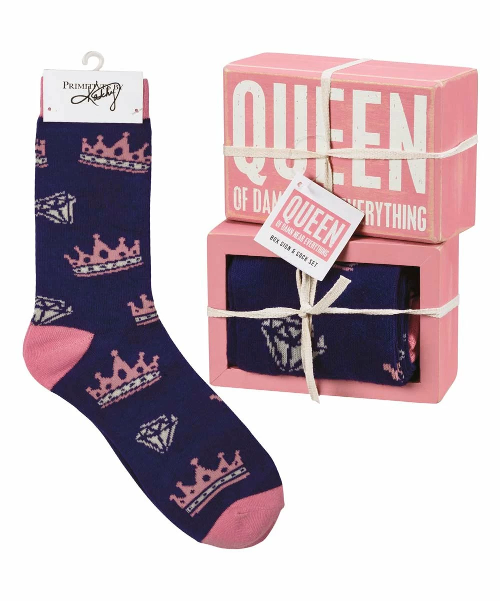Flaunt your royal status with this coordinated set complete with a bright box sign and jewel-themed socks.