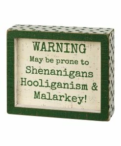 Add a festive touch to your home with this St. Paddy’s Day-ready box sign adorned with humorous text.