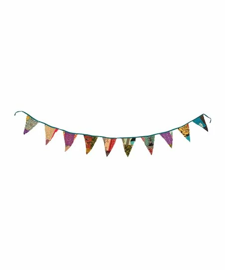 Let the festivities begin with this garland accent featuring an array of bohemian patchwork pennants in a variety of bright hues.