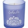 This candle comes housed in a glass jar that’s decorated with floral artwork and features a calming message.