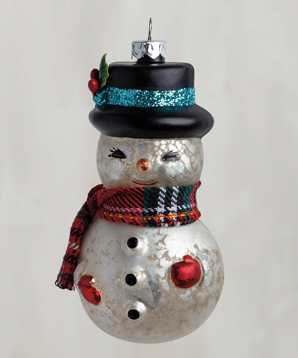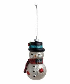 Lend a little shimmer to your festive décor with this jolly glass snowman ornament that showcases a dusting of sparkly glitter.