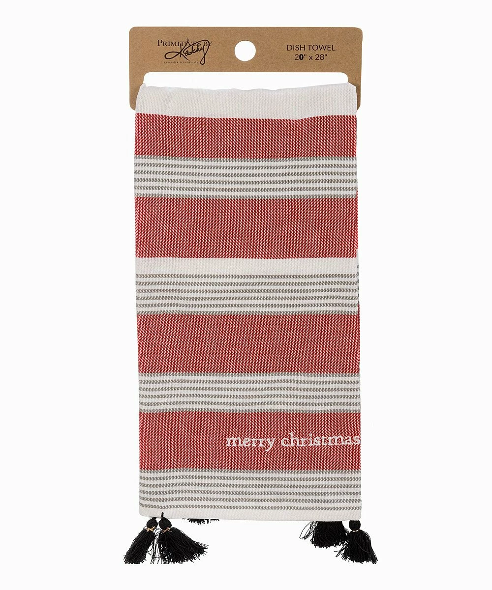 This kitchen towel features a festive message and tassel corner accents. Crafted from absorbent cotton.