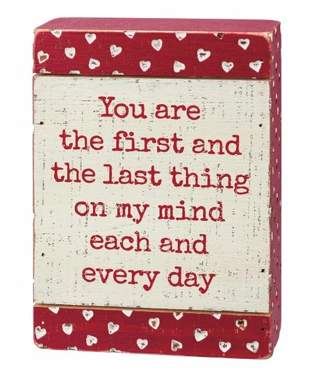 Add a pop of personality to your empty shelf space with this cheerful block sign made from wood for durability.
