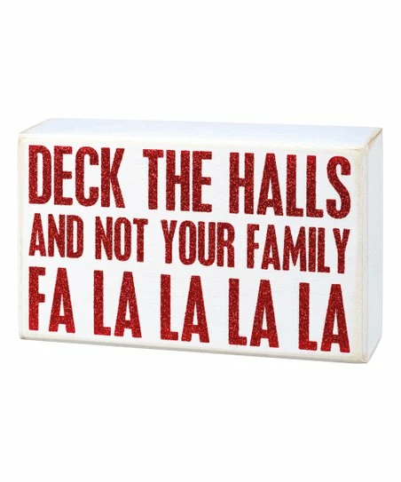 - Full graphic text: Deck the halls and not your family. Fa la la la la.