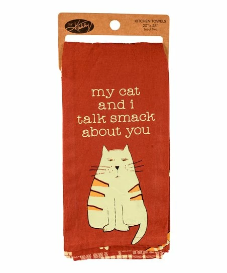 - Full graphic text (first towel): My cat and I talk smack about you.
