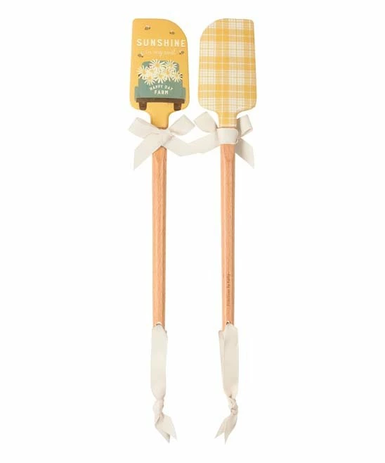 Bring a dose of joy to your baking adventures with this wooden spatula featuring a handy strap for easy hanging and a heartwarming message.