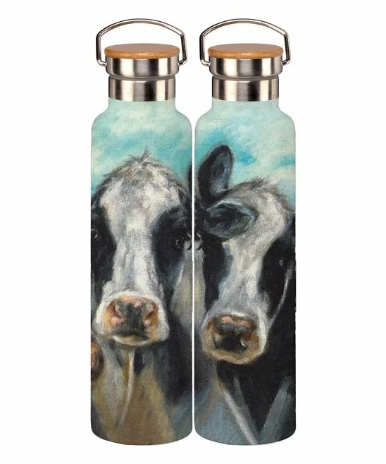 Keep up with your daily hydration schedule with this insulated bottle featuring a bamboo cap and handle.