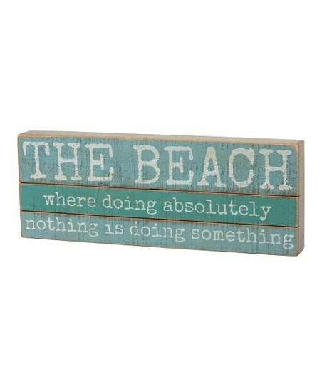 Bring beachy appeal to your living space aesthetic with this block sign that features aquatic hues and a laid-back message.