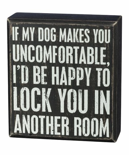 Add some animal-inspired attitude to your tabletops with this block sign boasting a humorous declaration.