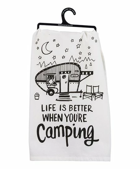 - Full graphic text: Life is better when you’re camping