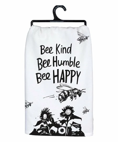 - Full graphic text: Bee kind, bee humble, bee happy.