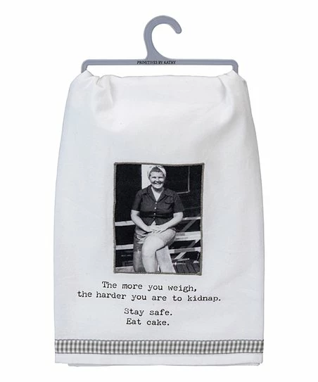 This absorbent cotton dish towel is packed with personality thanks to a retro photo graphic and playful message.