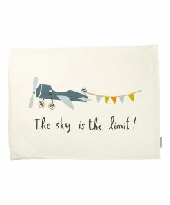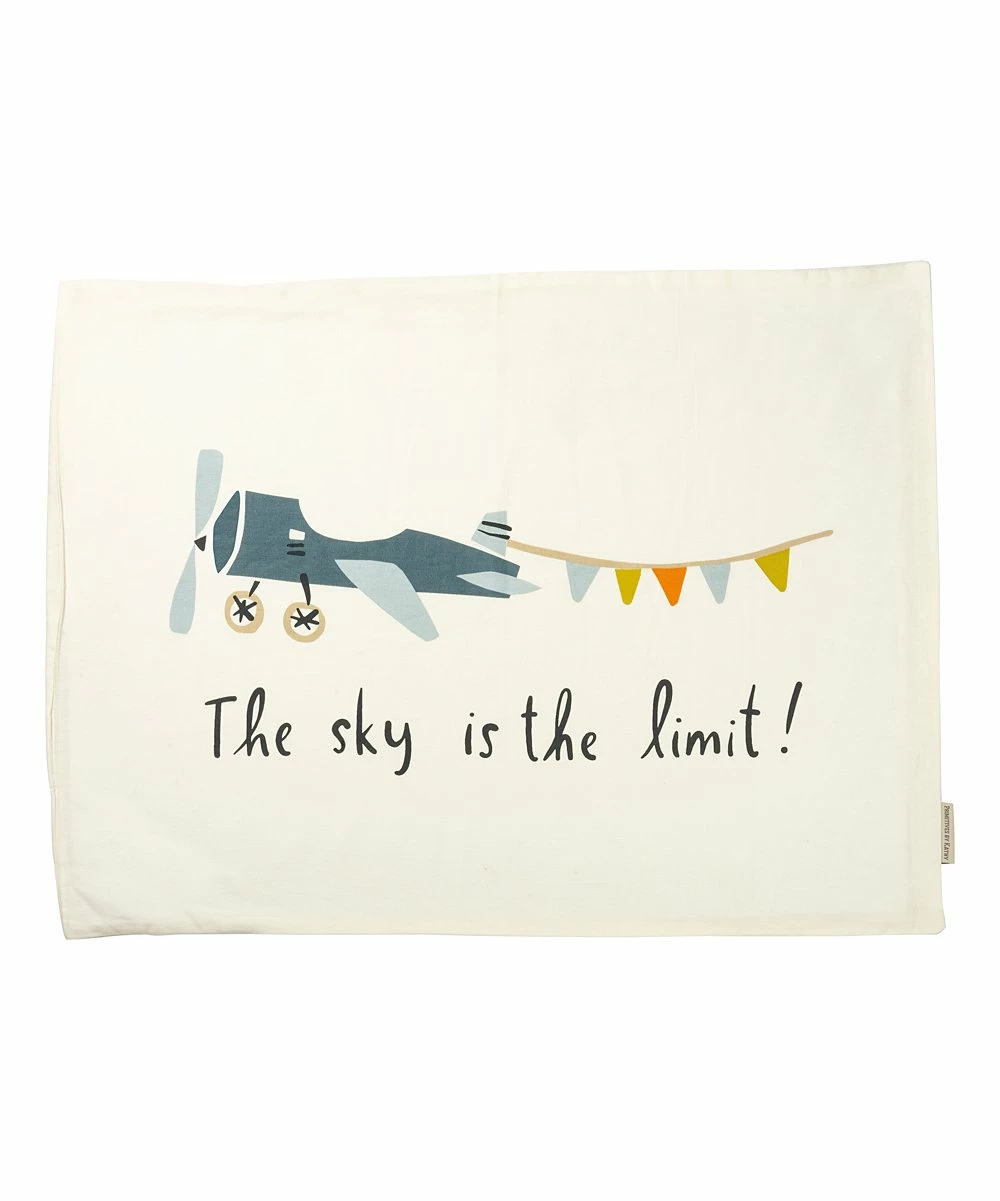 - Full graphic text (white plane pillowcase): The sky is the limit.