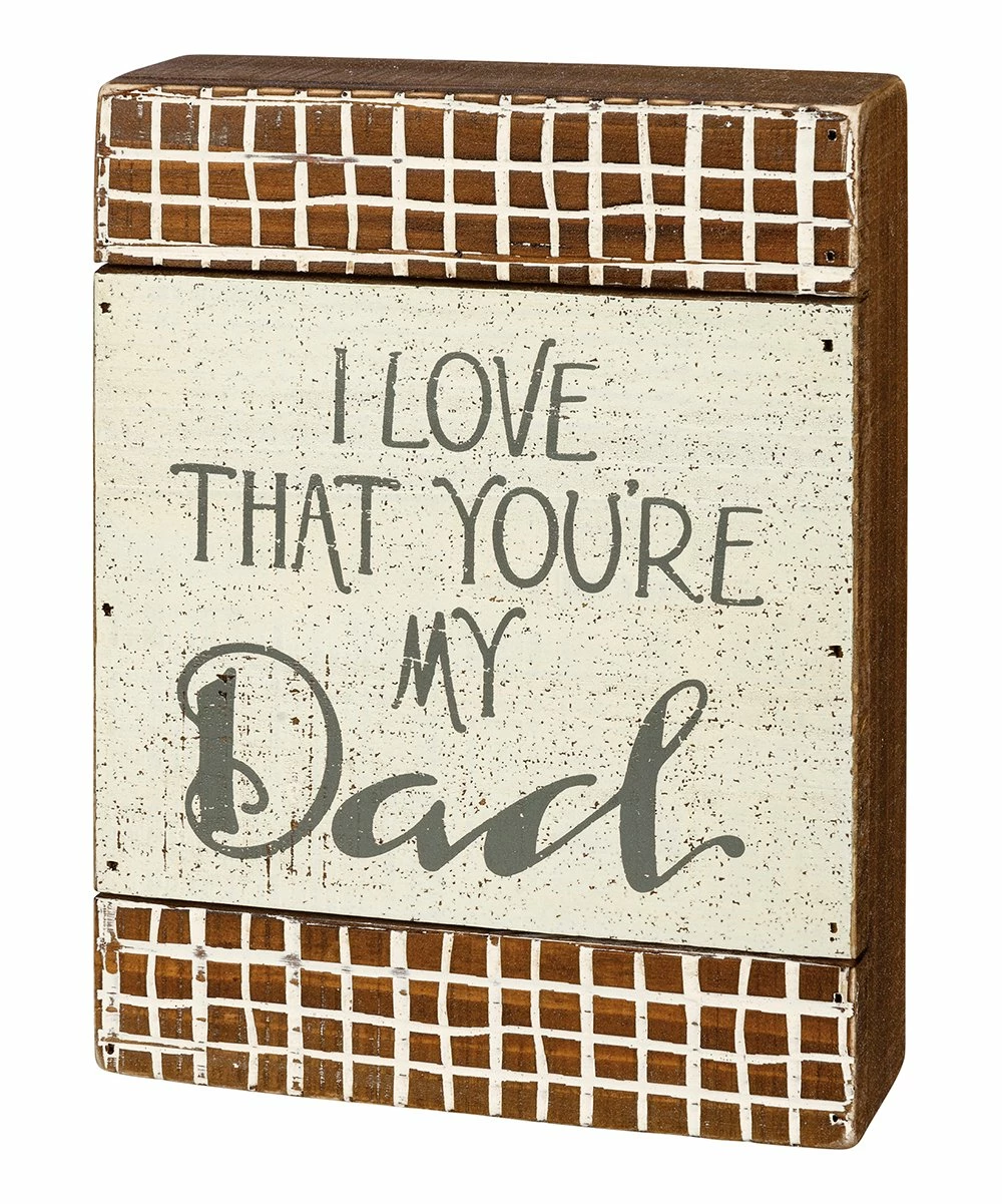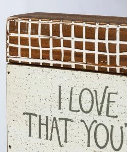 Add a bit of heartwarming charm to your interior spaces with this rustic box sign crafted with a wooden slat design boasting a loving message.