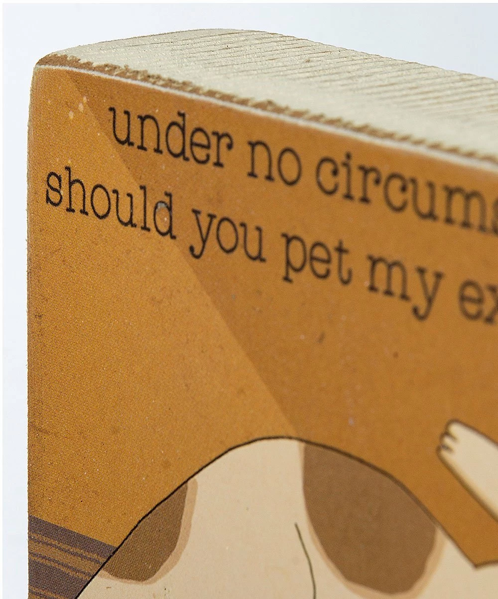 - Full graphic text: Under no circumstances should you pet my exposed bely.