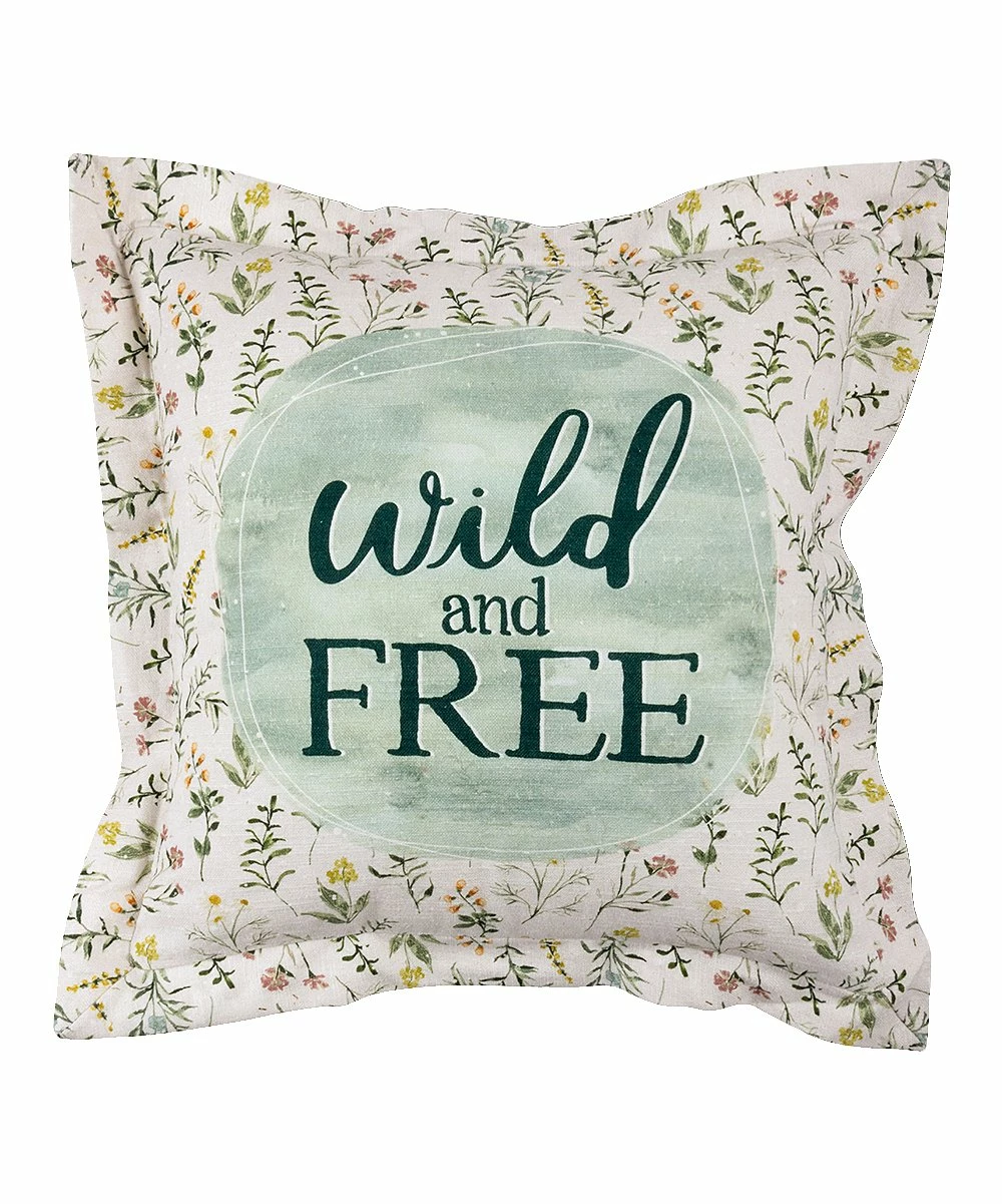 This throw pillow flaunts a colorful floral design and free-spirited message to brighten your space.