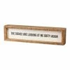 Bring a touch of playful humor to your abode with this rustic wood block sign boasting a chuckle-worthy sentiment.