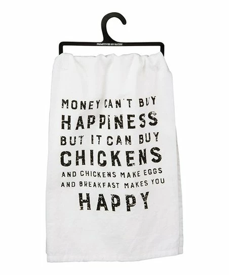 - Full graphic text: Money can’t buy happiness but it can buy chickens. And chickens make eggs and breakfast makes you happy.