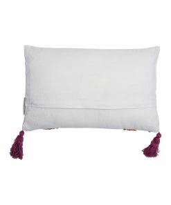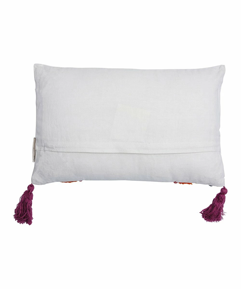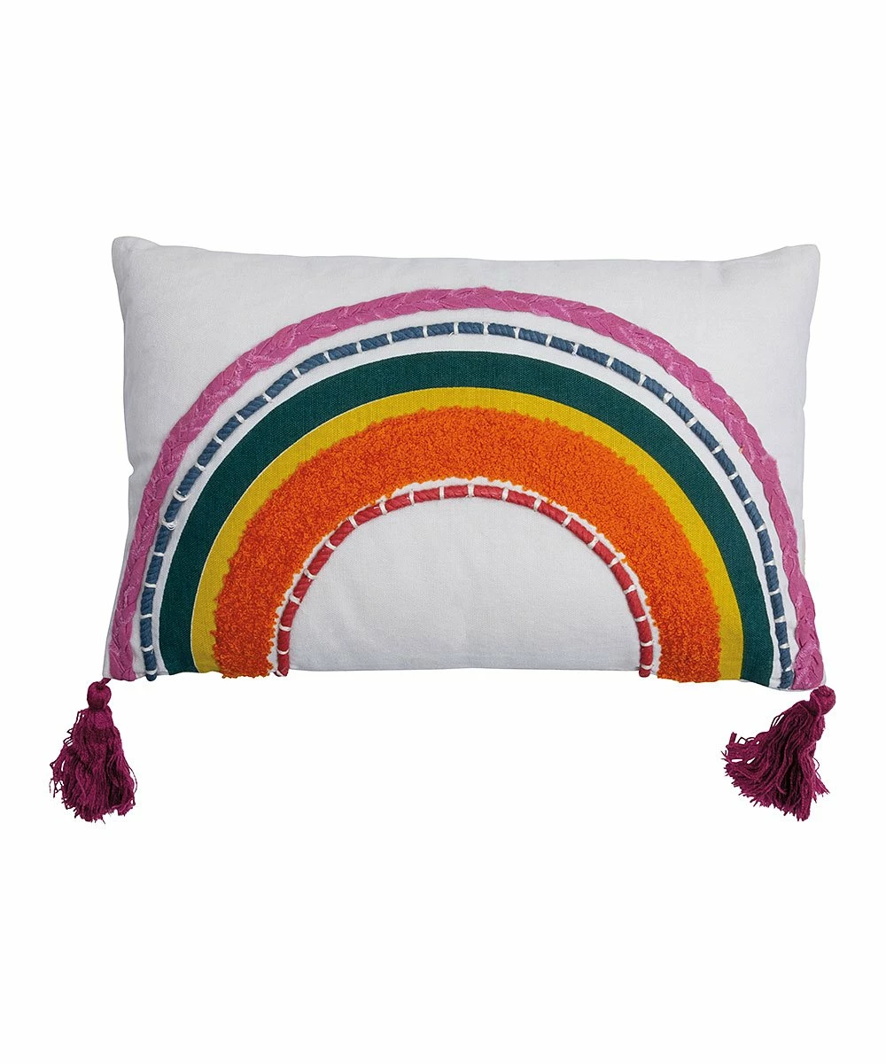 Liven up a bed or chair in your home when you decorate with this tassel-adorned rainbow throw pillow.