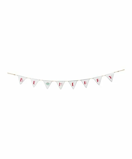 Holiday happenings receive a merry accent with this banner’s metal pennant details and themed phrase.