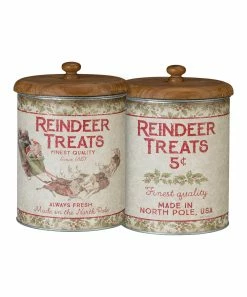 - Full graphic text (Canister 1): Reindeer treats. Finest quality since 1857. Always fresh made in the North Pole.