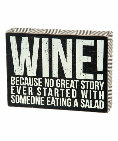- Full graphic text: Wine! Because no great story ever started with someone eating a salad.