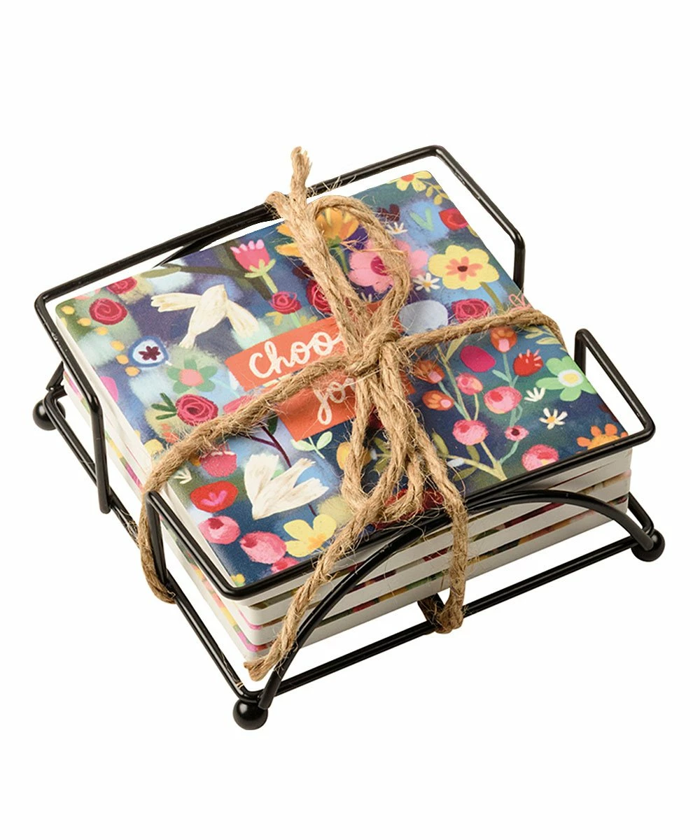 Whether you’re having afternoon tea or topping up your drinkware accessories, this set of bright floral coasters help keep drinks from staining tables and countertops while adding a lively accent to your home décor.
