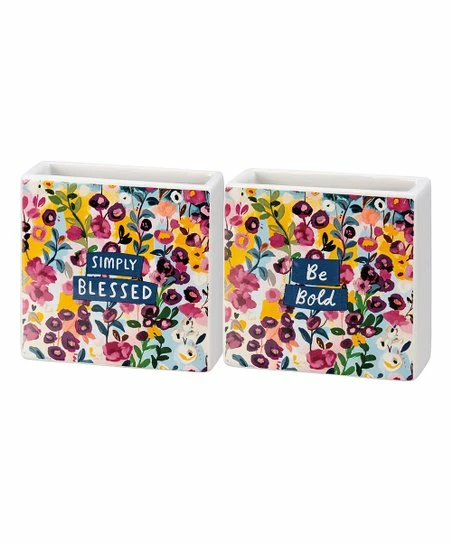 Alone or filled with blossoms, this square vase is a fun decorative addition and a reminder of positive thoughts.