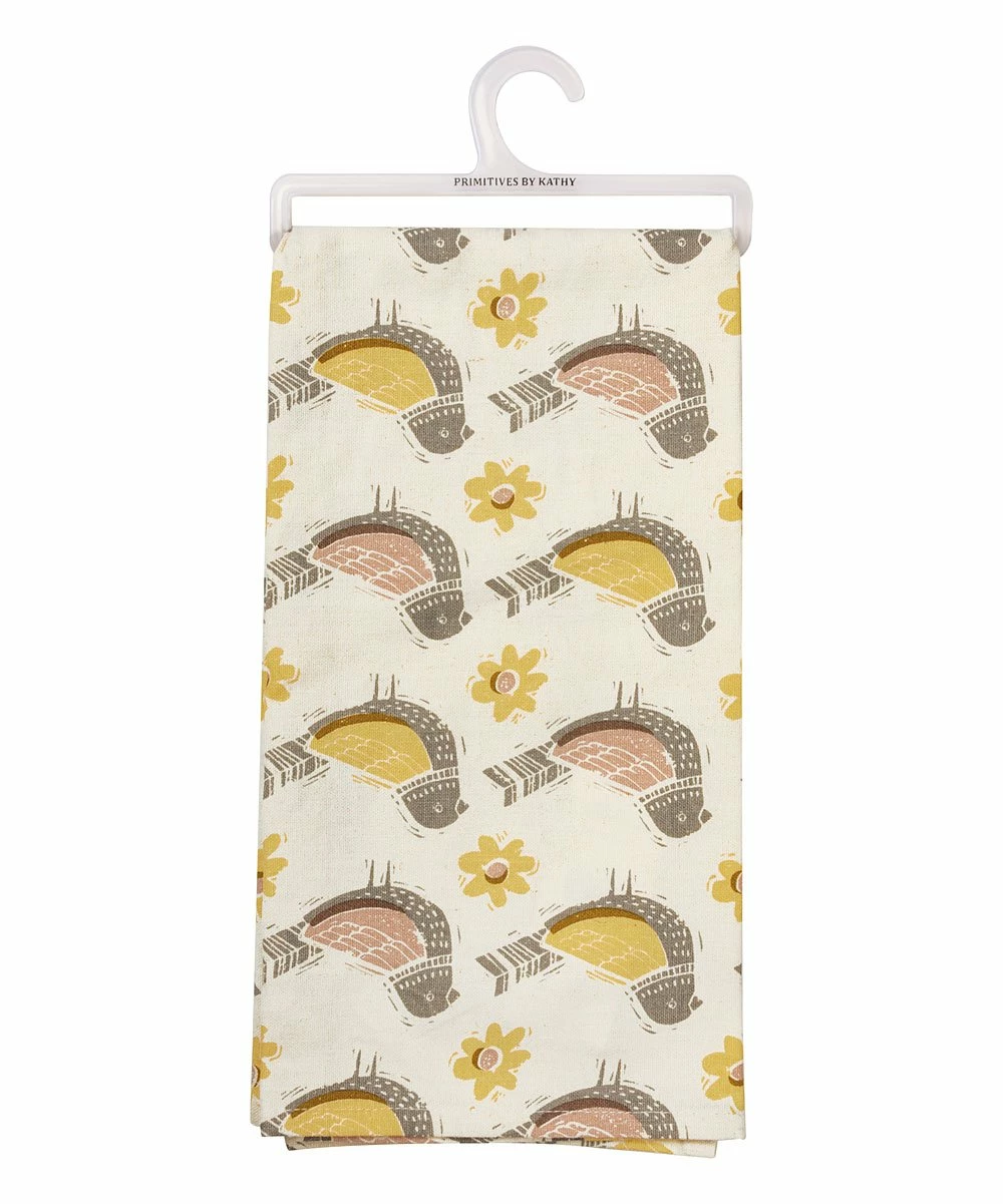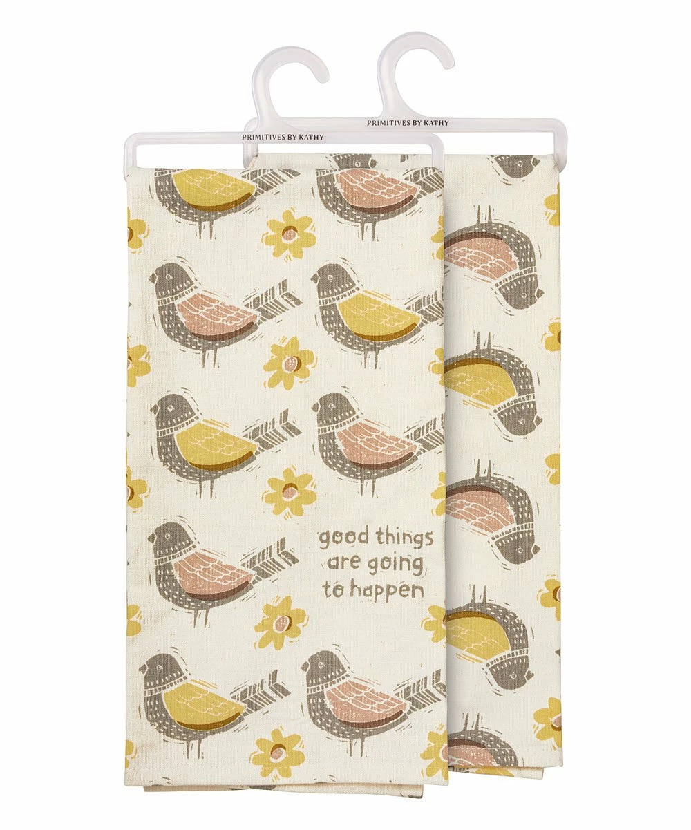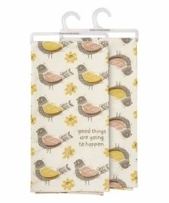 Boost your spirits while you wash and wipe by using this cotton-linen dish towel that features uplifting typography.