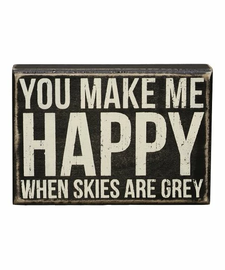 Remind guests of the important things in life with the bold message printed on this vintage-inspired block sign.